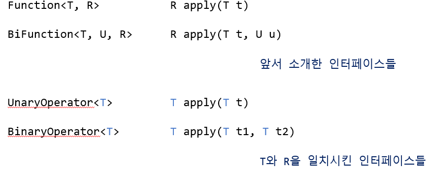 Function을 구체화한 인터페이스들은 입력값을 다른 타입으로 변경할 때 사용한다.