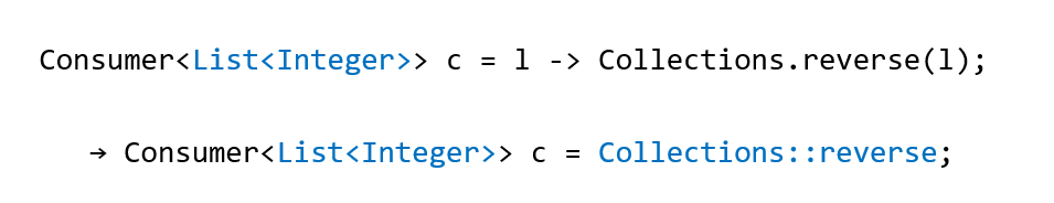 Consumer를 c에 저장하고 호출하면 reverse 메소드가 호출되면서 처리가 가능해진다.