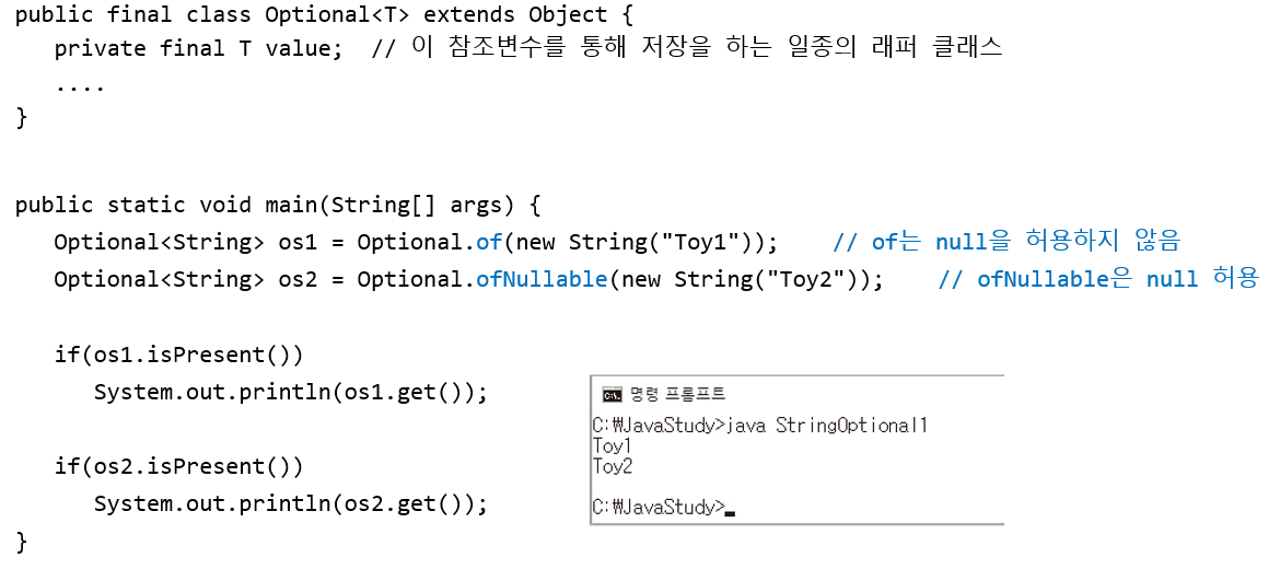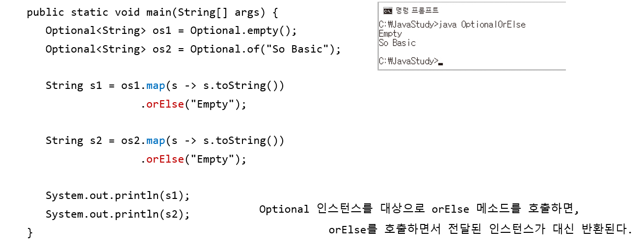 Optional 클래스를 사용하면 if~ else~문을 대신할 수 있다.