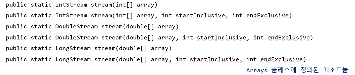 자료형에 따라 스트림 메소드가 따로 있고, 인덱스로 범위를 지정할 수 있다.