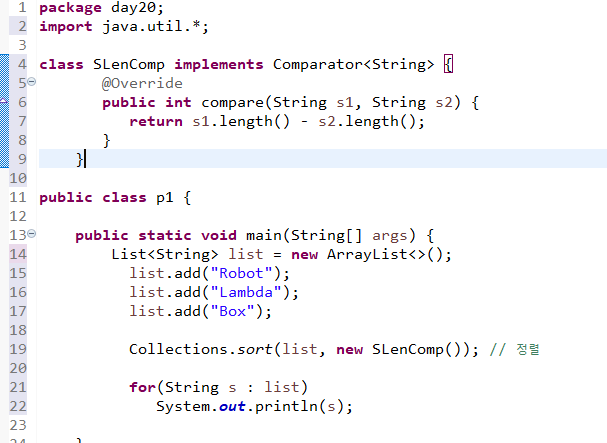 코드가 간결해진다. Collections에 정렬에 필요한 오버라이딩부분이 들어갔기 때문에 더이상 클래스는 필요가 없어졌고, 지워도 무방한 상태가 된다.