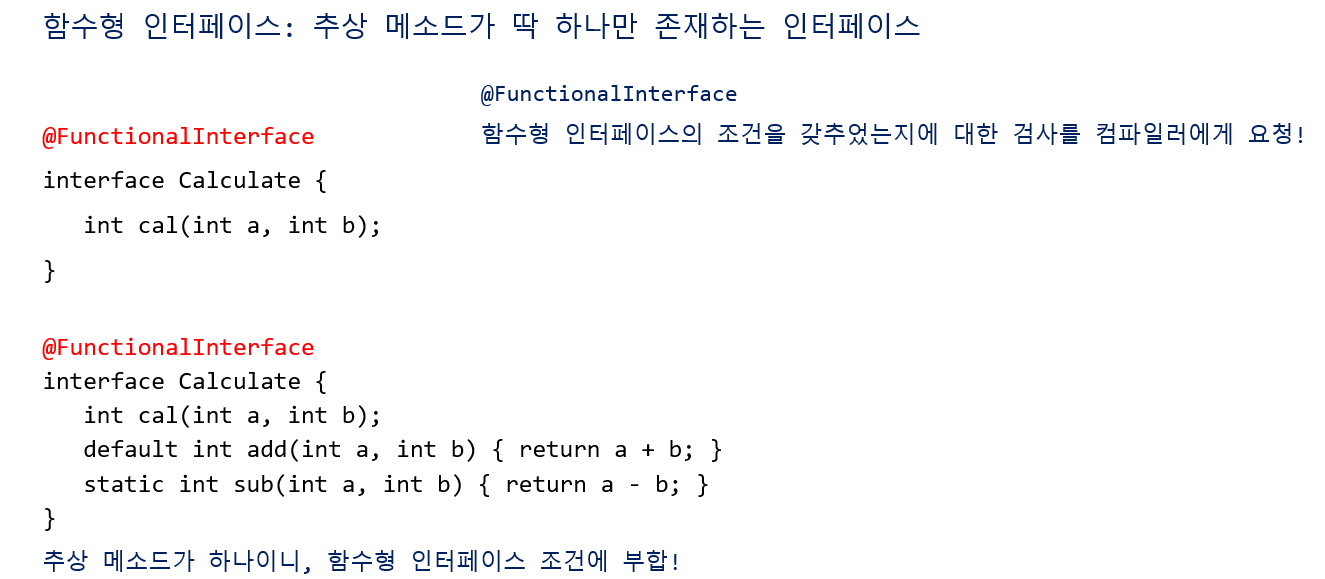 함수형 인터페이스 : 오직 추상 메소드 하나만 가지는 인터페이스.