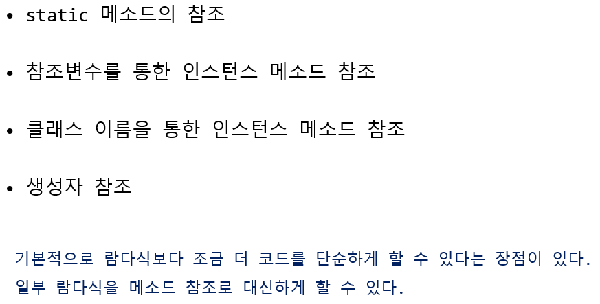여기에서 람다식을 메소드의 참조문으로 변경하면 다음과 같다.