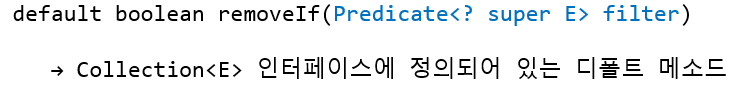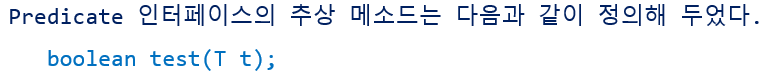 Predicate를 사용한다는 것은 인자를 불리언(true or false)으로 반환하기 위해 사용한다는 뜻이다.