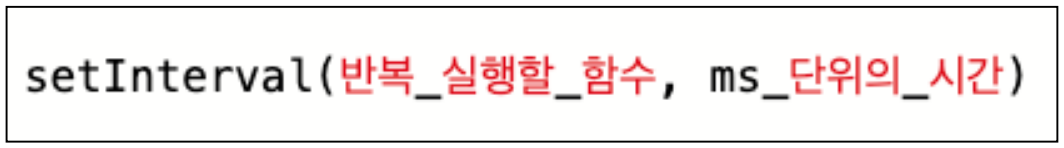 setInterval는 일정한 시간 간격에 따라 함수를 반복 실행할 수 있도록 해주는 타이머 메소드이다.