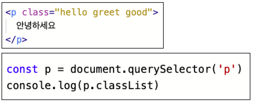 classList를 이용하면 요소의 클래스 이름, 개수를 확인할 수 있다.