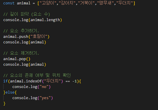 배열 요소 수는 원하는 개수만큼 포함시킬 수 있으며, 0개일 수도 있다. (비어있는 배열도 가능하다.)