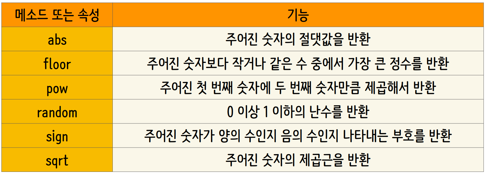 Math는 수와 관련된 속성과 메소드를 가진 내장 객체이다. 생성자가 아니다.