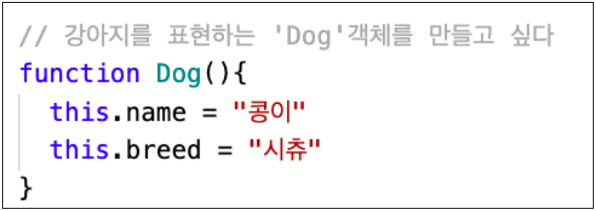 생성자 함수 정의 시 this 키워드는 객체 그 자신을 의미한다.