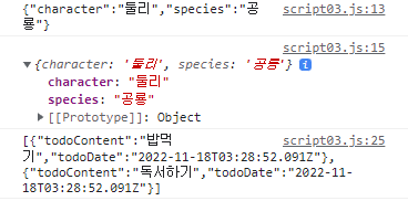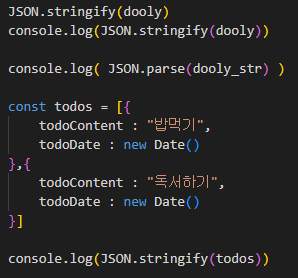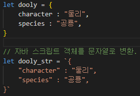 •내장 객체 JSON의 두 메소드를 사용하면 객체를 JSON 형식 문자열로 변환하거나, 그 반대의 환원도 진행할 수 있다.