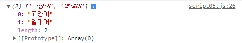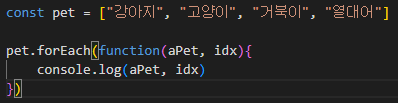 이 함수의 매개변수로는 대상 배열의 요소가 들어가는데, 매개변수를 2개 설정할 경우에