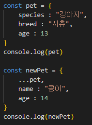 스프레드 연산자는 배열의요소를 복사할 때 효과적으로 사용할 수 있다.