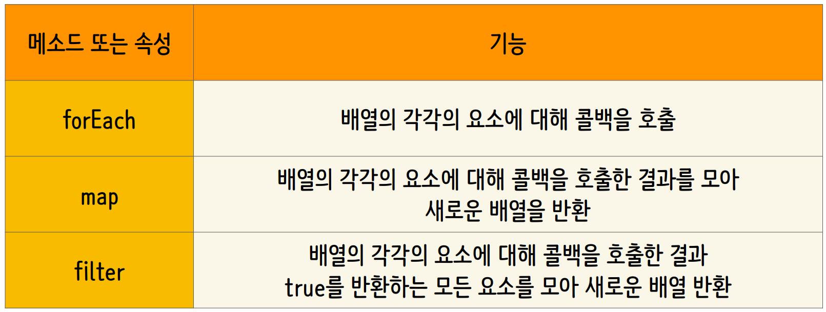 콜백함수를 사용하는 대표적인 배열 메소드들