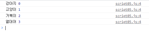 앞에오는 매개변수는 배열의 요소가, 뒤에 오는 매개변수는 요소의 인덱스 번호이다.