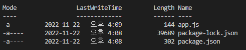 express 모듈 설치 후 이러한 파일들이 생성된다.
