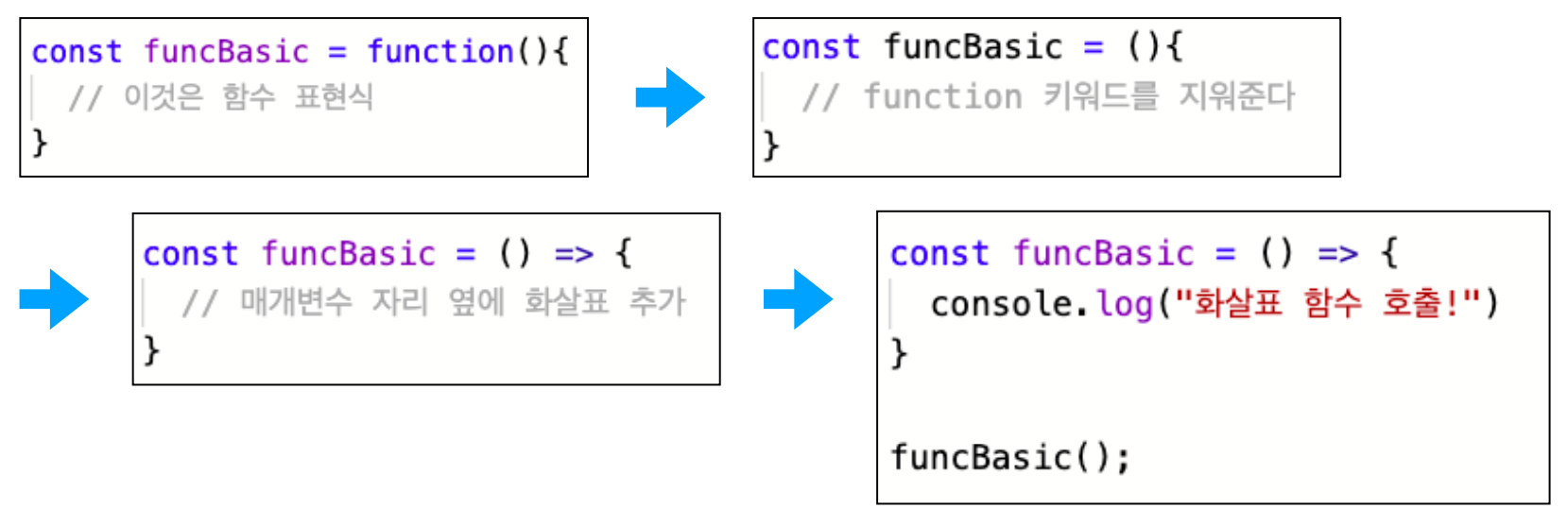 - function 표현식에 비해 구문이 짧다.