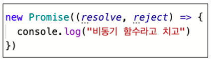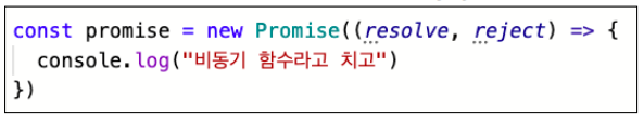 이를 Promise 객체(약속)를 생성하면서 인자로 전달한다.