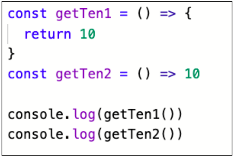 = > 반환값 외에 구문이 존재하는 경우에는 다시 중괄호와 return 필요해진다.