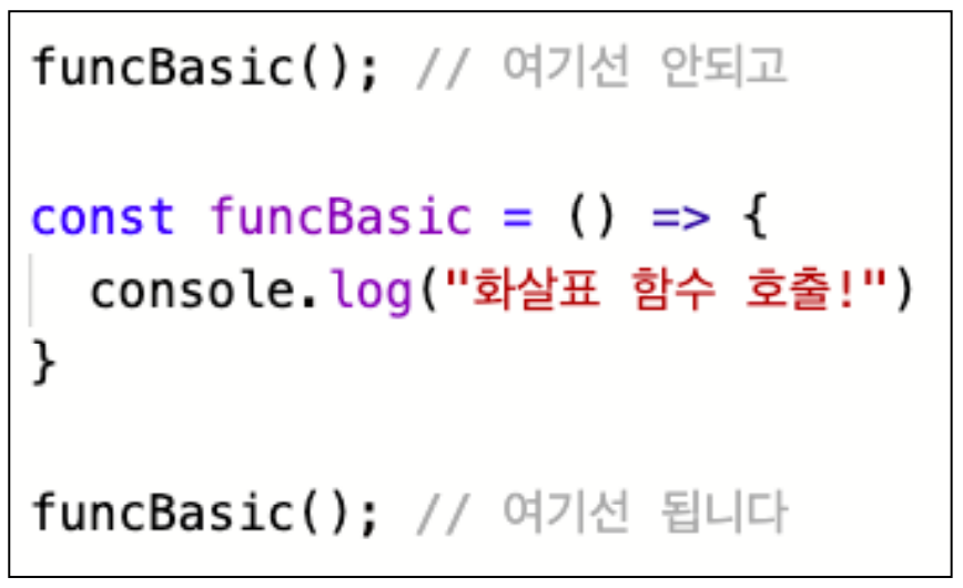*호이스팅(함수 선언보다 먼저 호출)이 불가하다.