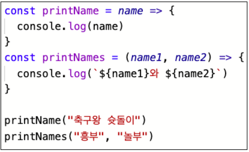 *매개변수가 하나인 경우에는 소괄호 생략 가능하다. 없거나 다수면 생략 불가