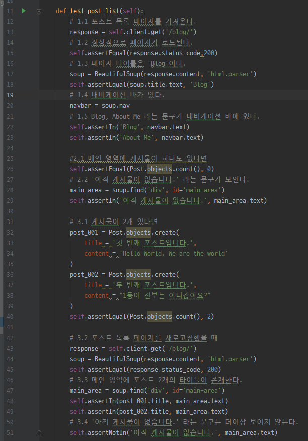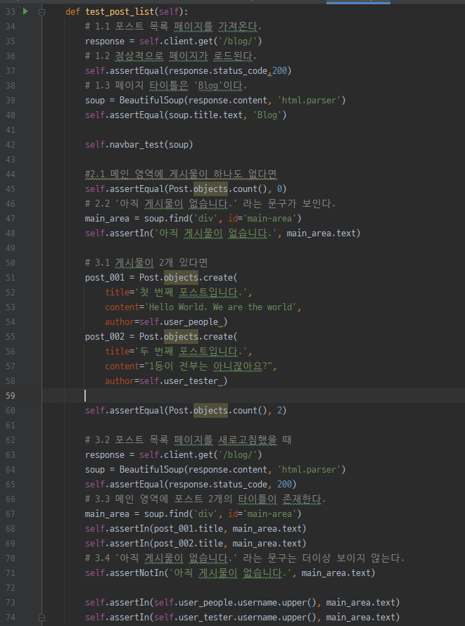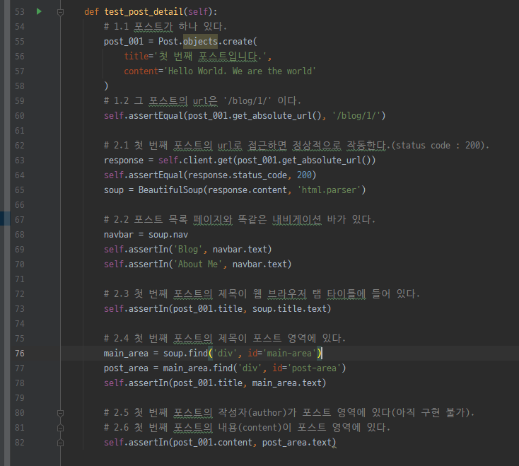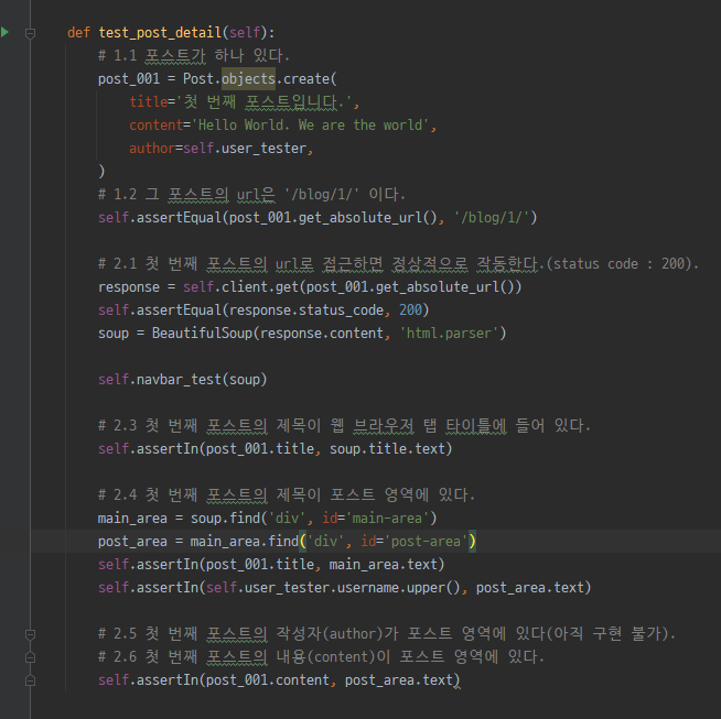 테스트 코드는 test_post_list() 함수와 test_post_detail() 함수에 동일하게 들어있다.