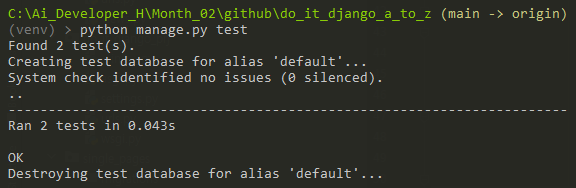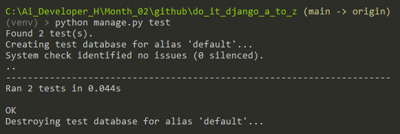 여기까지 수정한 내용에 이상이 있는지 확인하기 위해 터미널에서 테스트를 진행한다.
