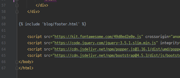 이때 장고의 include를 사용하면 HTML을 요소별로 분할해 관리하고 불러올 수 있다.