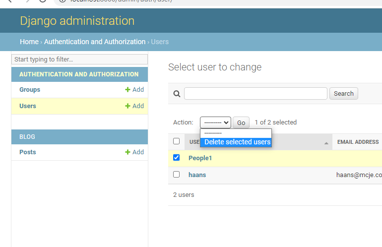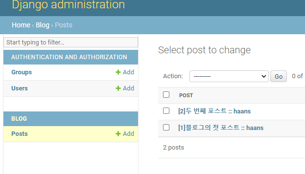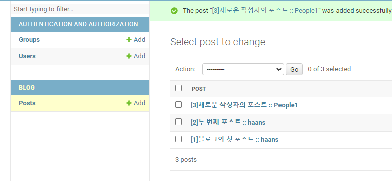 테스트를 위해 다시 관리자 페이지에서 새로운 포스트를 추가하고 유저를 삭제한다.