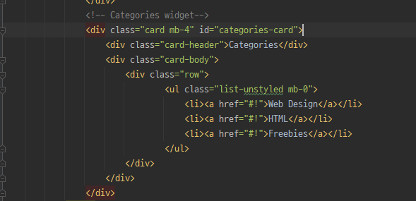 그리고 <span>태그를 추가하고, 부트스트랩에서 제공하는 뱃지를 사용해 카테고리를 표현하는 코드를 추가한다.