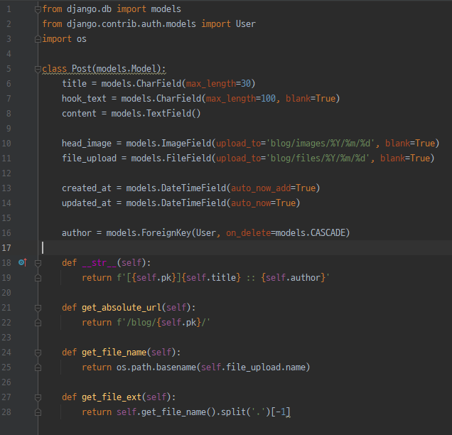 먼저, from blog.models import Post, Category로 지금까지 만든 포스트모델과 카테고리 모델을 불러온다.