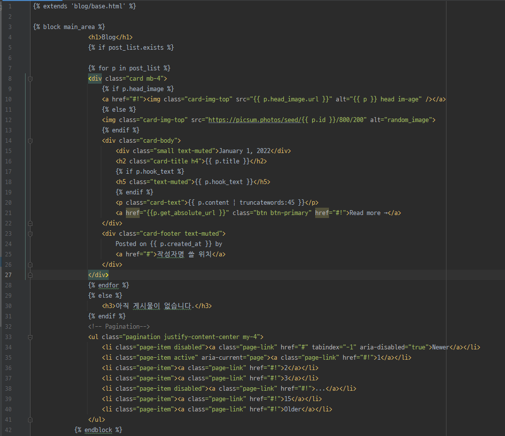 길었던 post_list.html의 내용이 이렇게 간략해졌다.