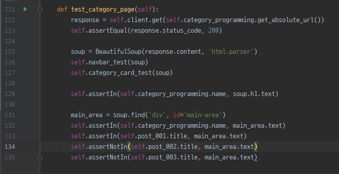 tests.py에 카테고리 페이지 테스트코드를 추가한다.
