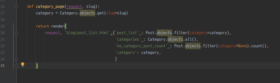 post_list = Post.objects.filter(category=category)는 위의 과정에서 포스트 중에서 변수에 저장한 쿼리셋으로 필터링한 카테고리만 가져와 라는 의미이다.