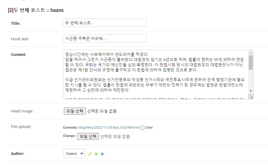 수정 후 다시 관리자 페이지를 새로고침하면 수정된 텍스트가 나타난다.