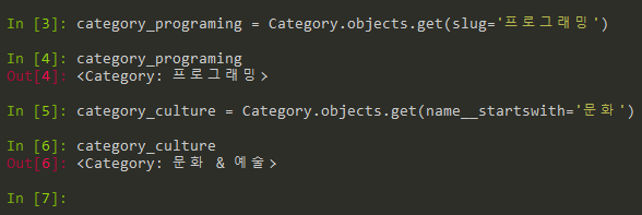 또한 다음과 같이 slug값이 일치하는 카테고리나, name이 '문화'로 시작하는 카테고리를 가져올 수도 있다.