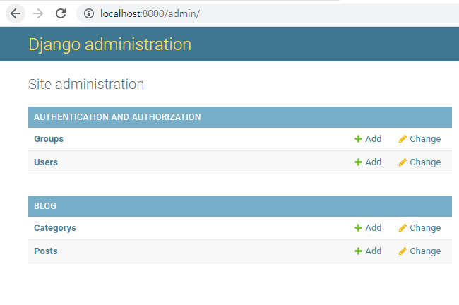 서버를 실행하고 관리자 페이지를 확인해 보면 카테고리 메뉴가 추가되었다.