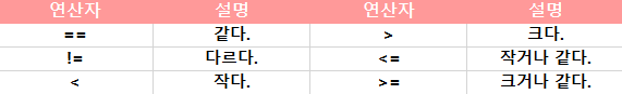 불은 '비교 연산자'를 통해 만들 수 있다.