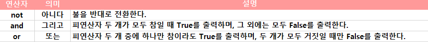 불은 오직 'True'(참)와 'False'(거짓) 값만 가질 수 있다.