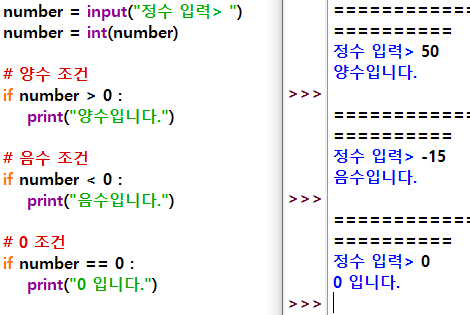 조건문은 조건문의 다음 문장은 들여쓰기(4칸 띄어쓰기 or TAB)를 한 후 입력한다.