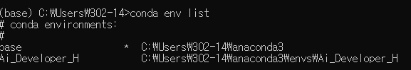 먼저 아나콘다의 가상환경 목록을 확인한다.
