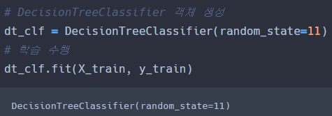random_state=11는 코드를 수행할 때마다 동일한 학습/예측 결과를 출력하기 위해 사용된다.
