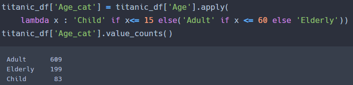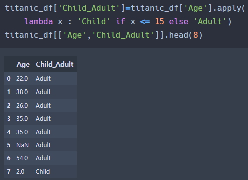 따라서 [ lambda x : if x <= 15 'Child' else 'Adult' ]가 아니라