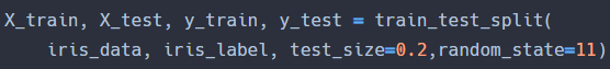 예를 들어 test_size = 0.2로 입력 파라미터를 설정하면 전체 데이터 중 테스트 데이터가 20%, 학습 데이터가 80%로 데이터를 분할한다.