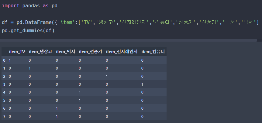판다스에는 원-핫 인코딩을 더 쉽게 지원하는 API가 있다.