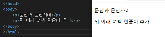 하나의 p 태그는 하나의 문단을 표현한다. 문단과 문단 사이에는 공백이 있다.