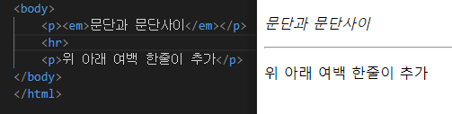 문단끼리는 구분이 되며 문단의 위 아래로 여백이 한 줄 추가된다.
