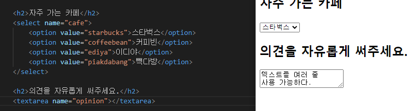 textarea 역시 name을 추가하여 구별해줄 수 있는 입력 요소이다.