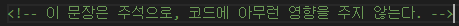 이와 같이 <!-- 와 --> 사이에 들어가는 내용은 주석처리되어 아무런 영향을 주지 않는다.