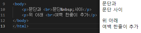 <br> 태그로 줄바꿈이 실행되고, 이 띄어쓰기를 해준다.