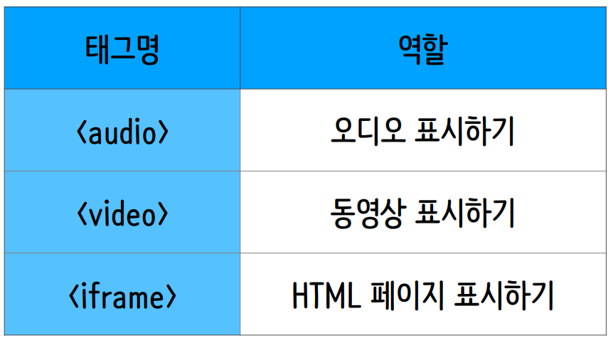 •소리와 영상 콘텐츠는 브라우저마다 처리 방식이 달라 같은 코드라도 결과 가 서로 다를 수 있다.